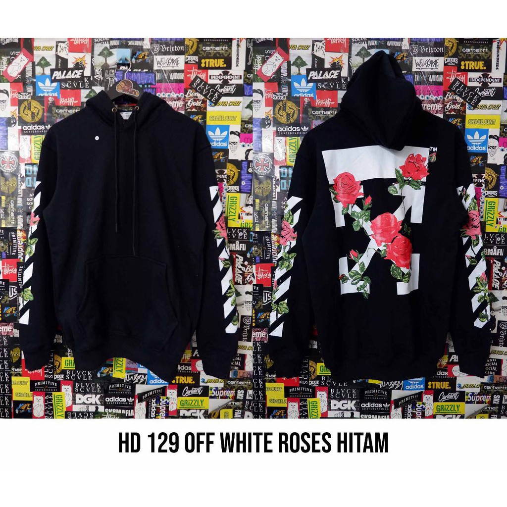 HD 129 OFF WHIRE ROSES HITAM - JAKET GAMBAR BUNGA SABLON BELAKANG | Shopee Indonesia