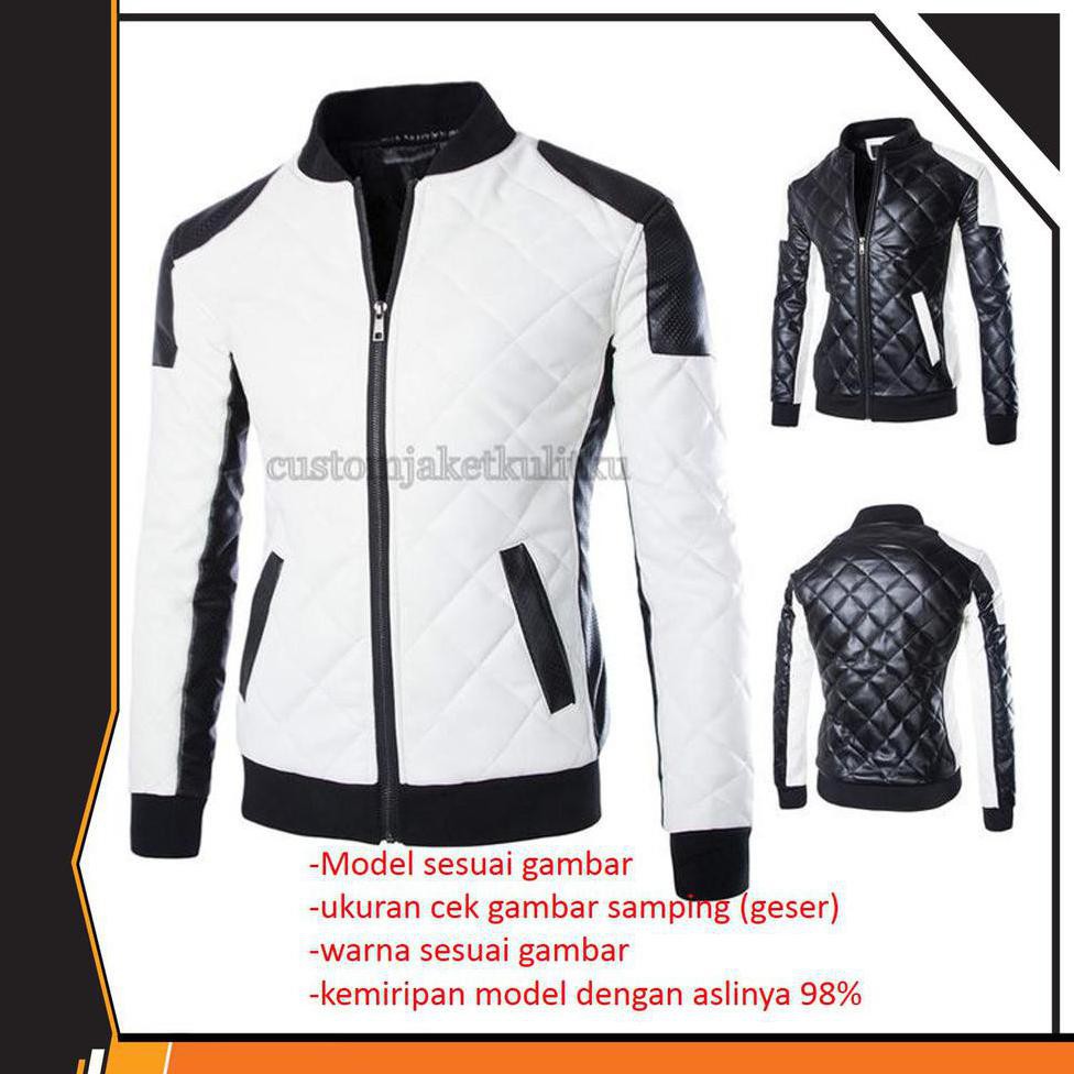 Diskon!! Terbaru..!!Jaket Kulit Asli Domba Super Bahan Super Kualitas Juara Warna Putih Kombinasi | Shopee Indonesia