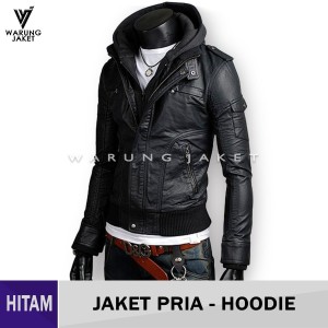 DIRUNA Point - Jaket Kulit Sintetis Hoodie Terbaru