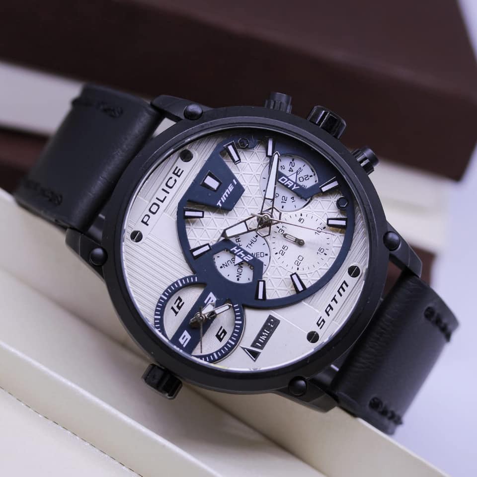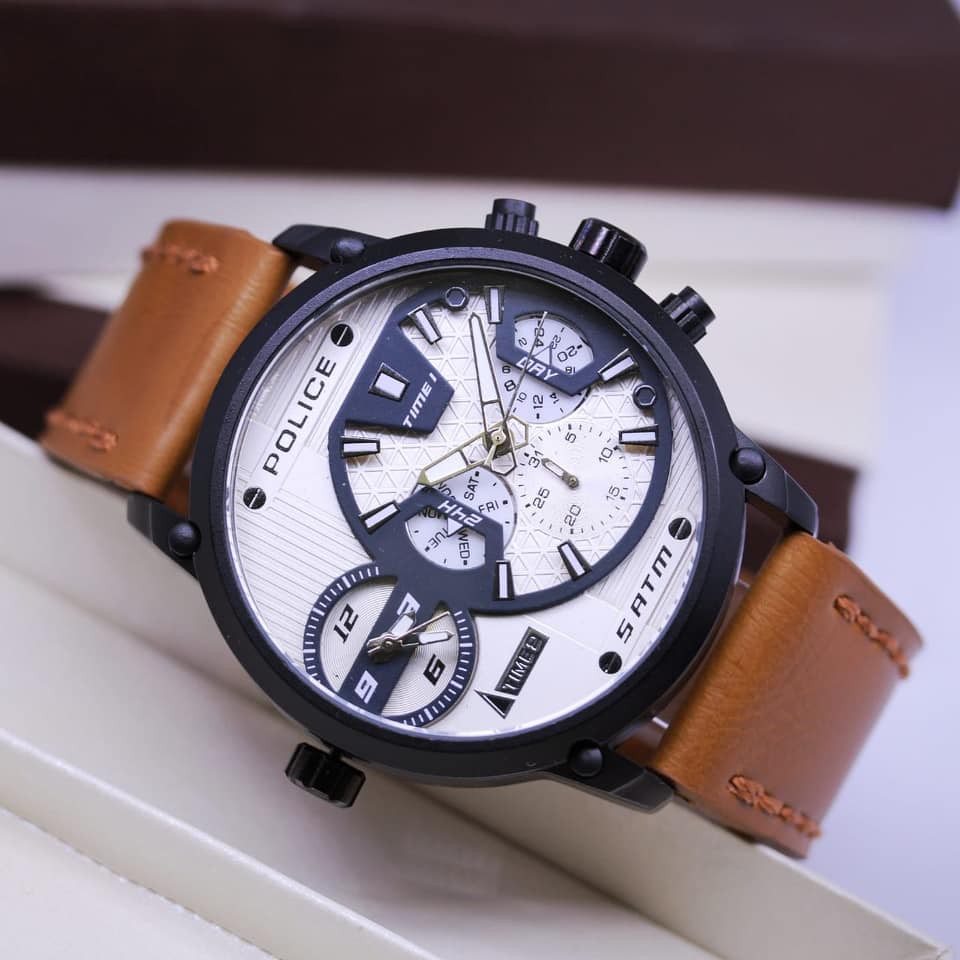 JAM TANGAN POLICE KULIT DOUBLETIME DIAMETER 4.8CM | Shopee Indonesia