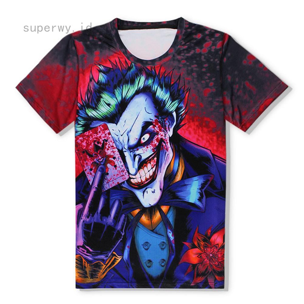 Kaos T-Shirt Pria dengan Gambar Kartun Joker 3D dan Poker Digital untuk Musim Panas | Shopee Indonesia