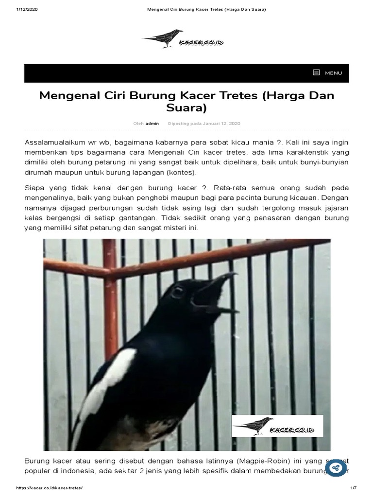 Mengenal Ciri Burung Kacer Tretes (Harga Dan Suara) | by Indro Dwi Saputro | Medium