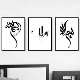 Lukisan Dinding Desain Kaligrafi Arab Warna Hitam & Putih Bahan Kanvas | Shopee Indonesia