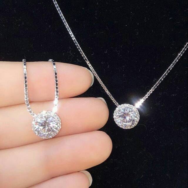 Kalung Berlian Liontin Charm Classic Korea Fashion Aksesoris Perak Asli Kalung Cantik Import | Shopee Indonesia