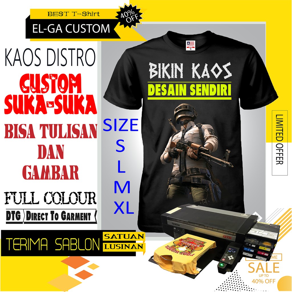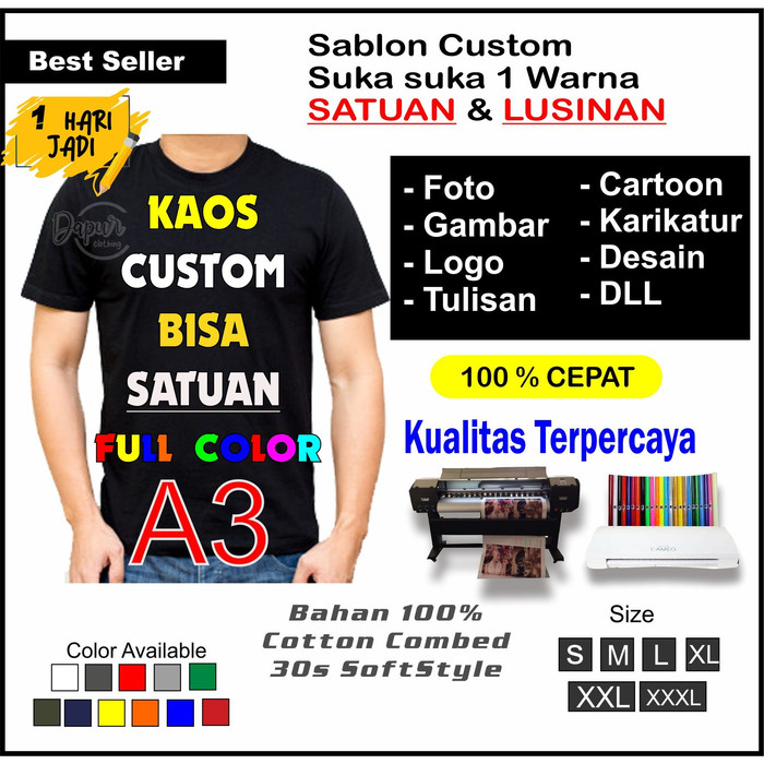 SABLON KAOS CUSTOM KAOS SABLON SATUAN COWOK CEWEK SABLON DTG TULISAN DAN GAMBAR FULL COLOUR | Shopee Indonesia
