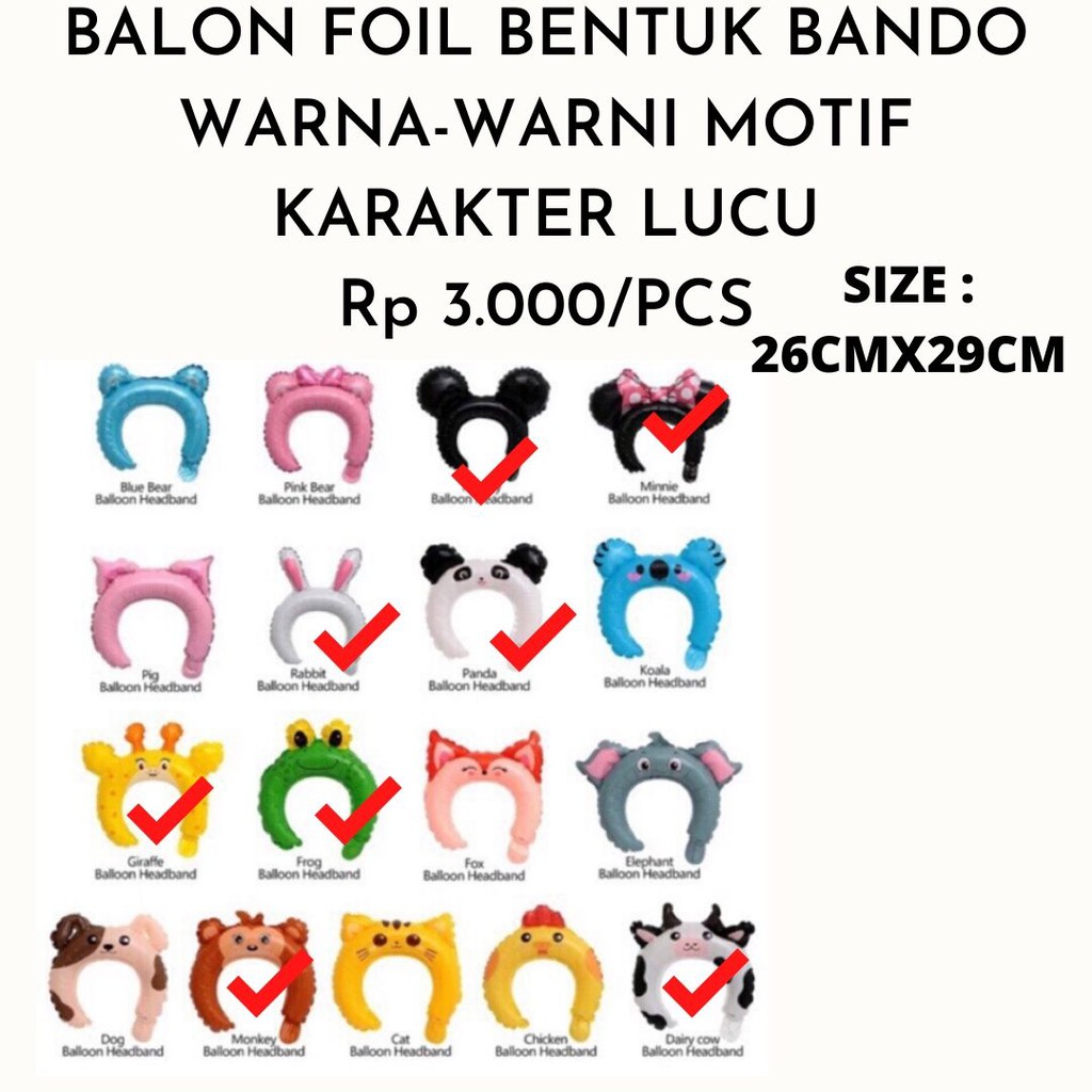 DIJAMIN MURAH] BALON BENTUK BANDO WARNA-WARNI & BANYAK MOTIF KARAKTER HEWAN LUCU | Shopee Indonesia