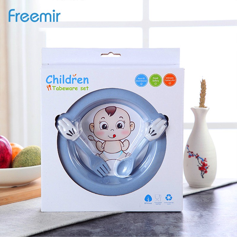 Freemir Piring anak gambar kartun bayi lucu bahan jerami gandum dilengkapi sendok dan garpu | Shopee Indonesia