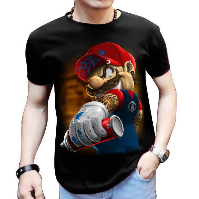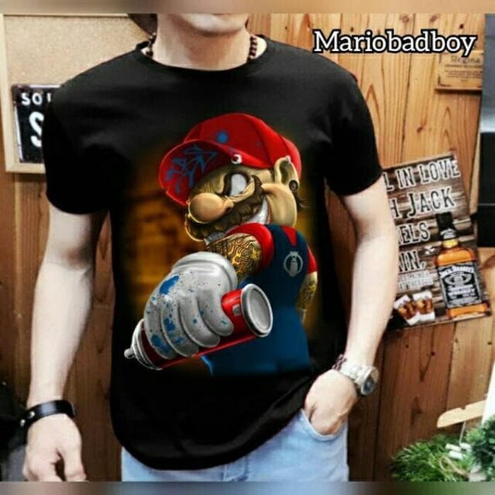 Kaos distro kaos cowok keren gambar kartun mariobadboy | Shopee Indonesia