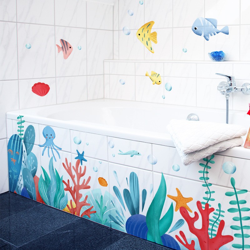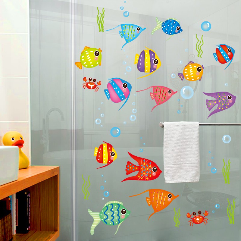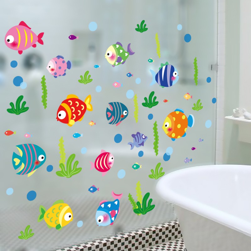 Bayar Di Tempat] Kamar mandi Kartun Ikan Wallpaper Bayi Anak Kamar Decal Art Wall Sticker Decor | Shopee Indonesia
