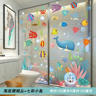 Lucu kartun ikan kamar mandi kaca pintu dan jendela stiker dinding kamar mandi s | Shopee Indonesia