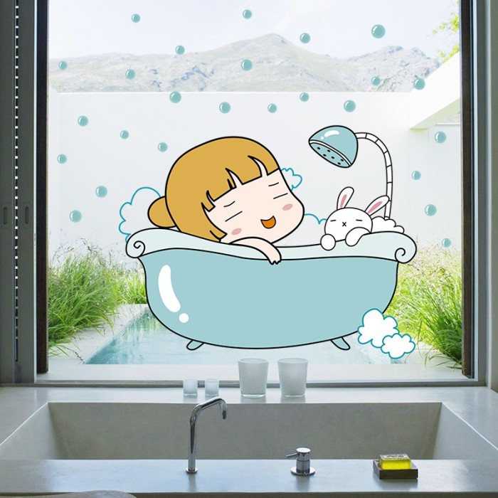 Kamar mandi toilet ubin, Stiker kaca, Stiker kreatif, Anak-anak kamar mandi tahan air kartun stiker lucu, Perekat diri | Shopee Indonesia