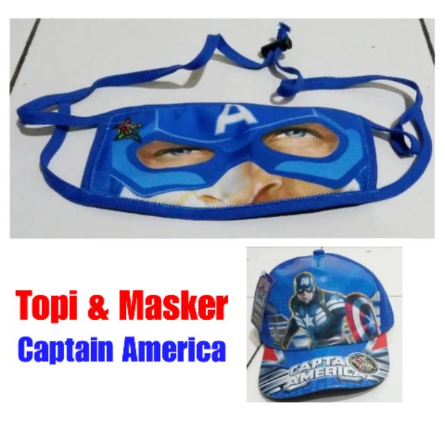 Paket Topi dan Masker anak laki cowok karakter motif gambar kartun captain america kapten amerika | Shopee Indonesia