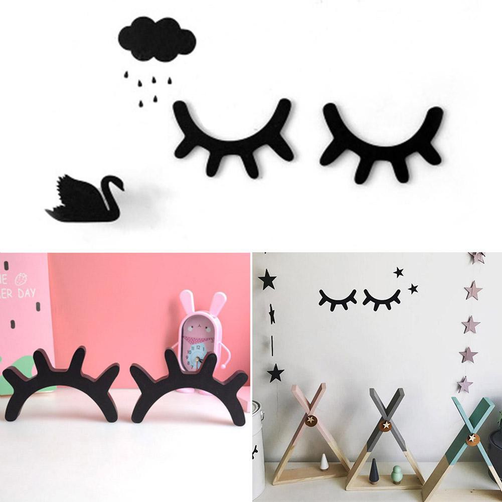 Nordic Lucu Kayu 3D Bulu Mata Kartun Pola Mata Mengantuk Stiker Dinding (2Pcs) | Lazada Indonesia