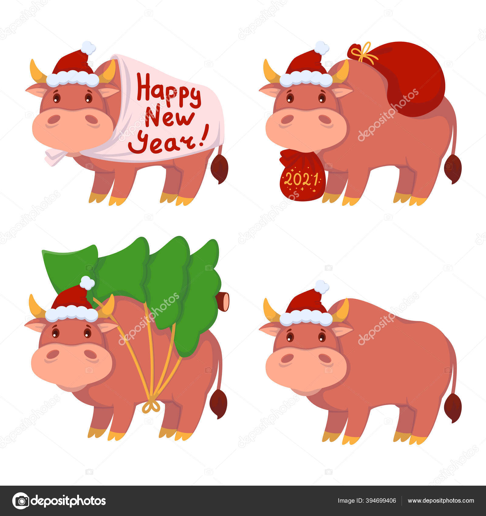 Banteng Dengan Hadiah Membawa Pohon Natal Tahun Lembu Jantan Happy — Stok Vektor © danamayfay #394699406