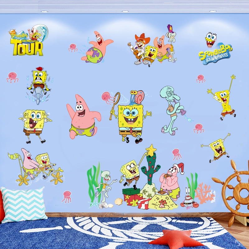 Kartun SpongeBob stiker dinding anak-anak yang lucu ini ruang kamar bayi dekorasi kamar bayi TK dind | Shopee Indonesia