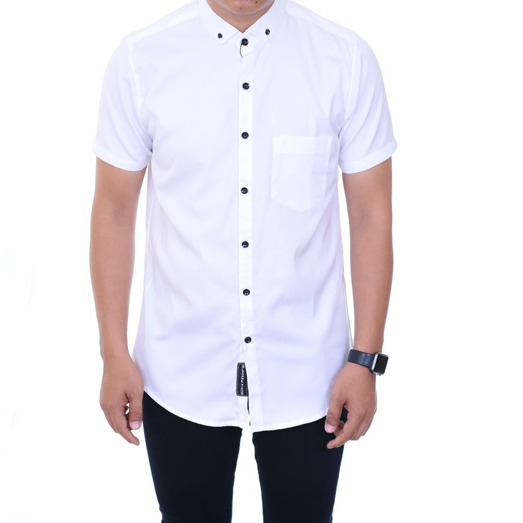 Baju Hem Kemeja Putih Polos Pria Kerah Kancing Putih Kancing Hitam Lengan Panjang Casual Slimfit 3344 di Lapak TheBlessingShop | Bukalapak