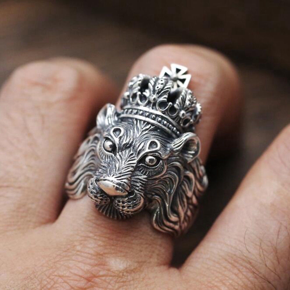 S925 Perak Antik Kepala singa Mahkota Baja Titanium Pria Perhiasan Satwa Punk Fashion Cincin Rings | Shopee Indonesia