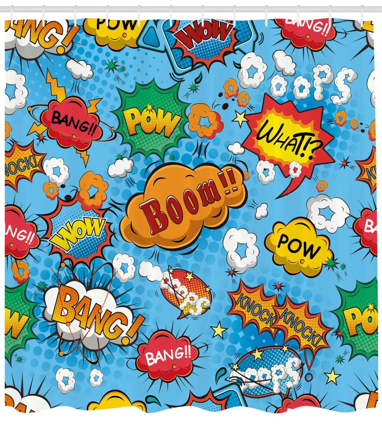 Superhero Shower Tirai dengan Komik Berwarna warni Ikon Gaya Efek Boom Berteriak Majalah Tanda Pop Art Kain Kamar Mandi Dekorasi Set|Shower Tirai| - AliExpress