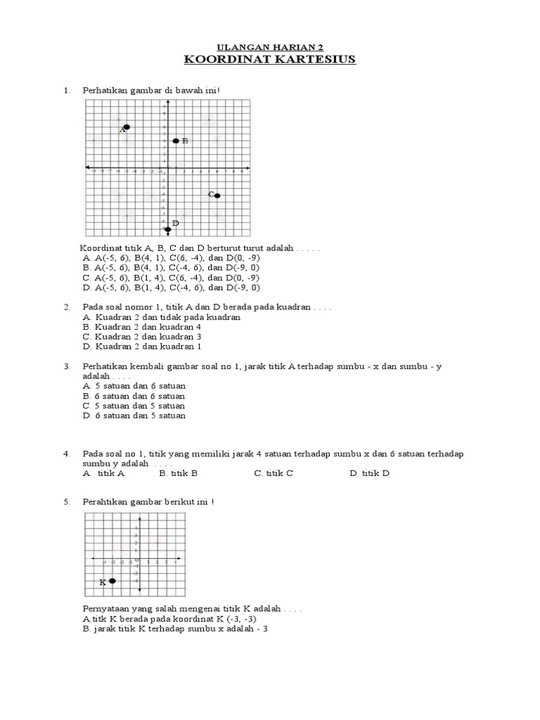 Latihan Soal USBN SD: Koordinat Kartesius - madematika