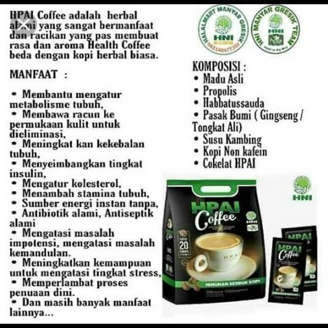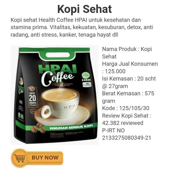 kopi sehat herbal Health coffe hni hpai kopi radix berstamina dan berenergi alami | Shopee Indonesia