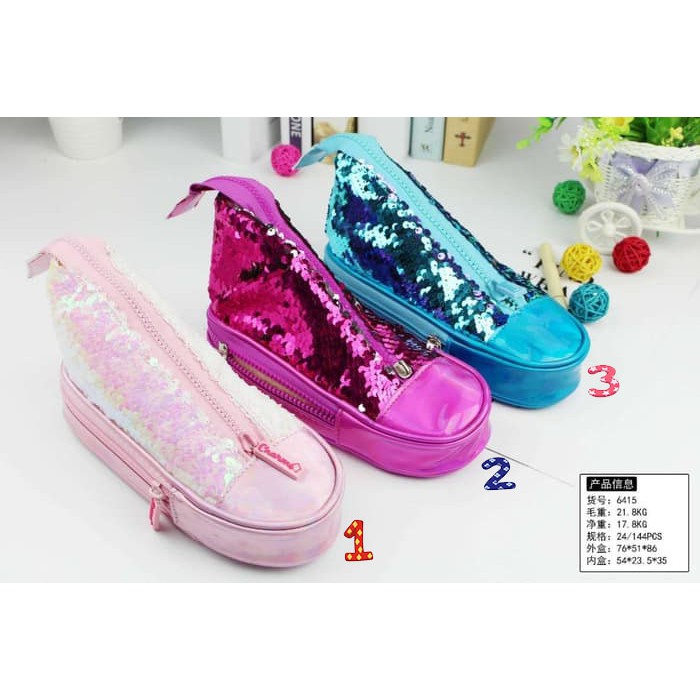 TERBARU - TERMURAH Pencil Case Sequin Bentuk Sepatu Cantik Import Tempat Kotak Pensil Anak Sekolah | Shopee Indonesia
