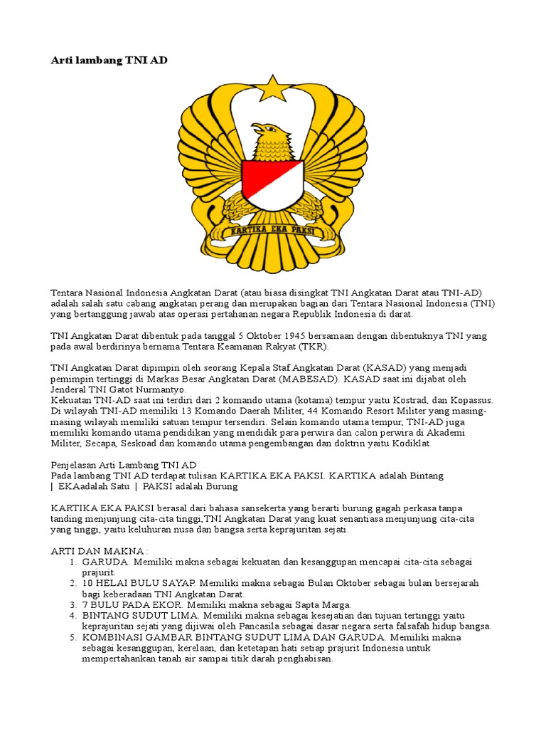 Logo Tentara Nasional Indonesia Angkatan Darat ( TNI AD ) - Kartika Eka Paksi - Ardi La Madi’s Blog