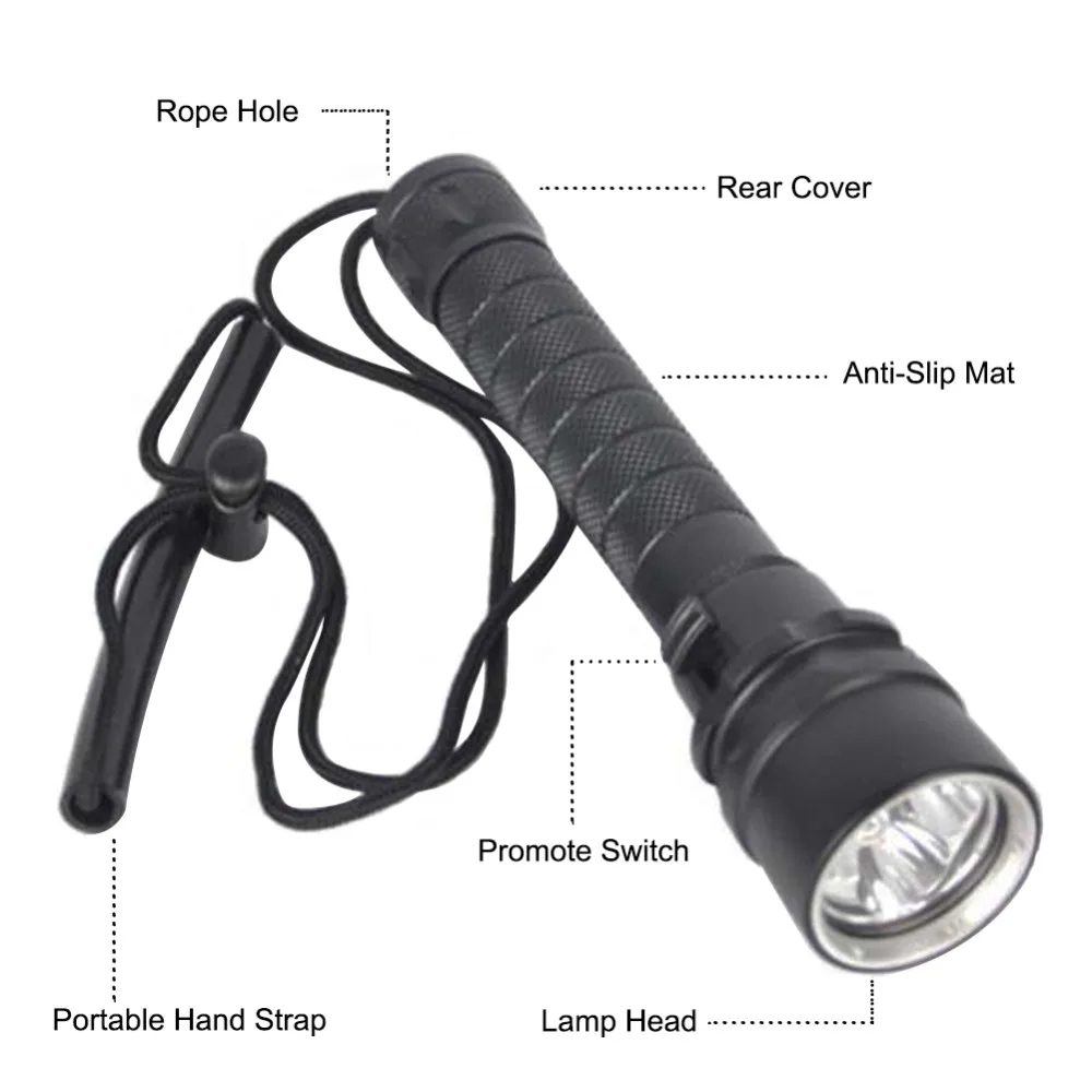 Asafee Menyelam lampu suluh Underwater 18650 Scuba Menyelam Light 3xCree XM L2 kalis air LED Menyelam lampu suluh obor 50M