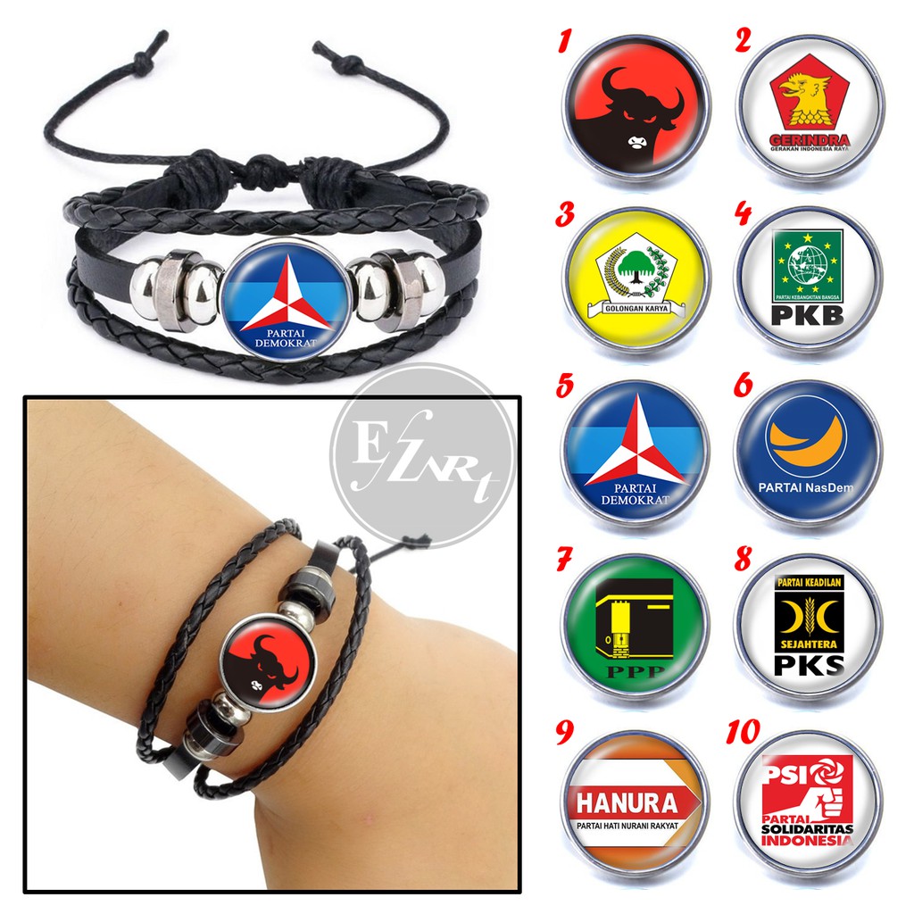 Gelang Custom Gambar Logo Partai Bahan Kulit Kepang Multilayer - PDIP Gerindra Golkar Demokrat PSI | Shopee Indonesia