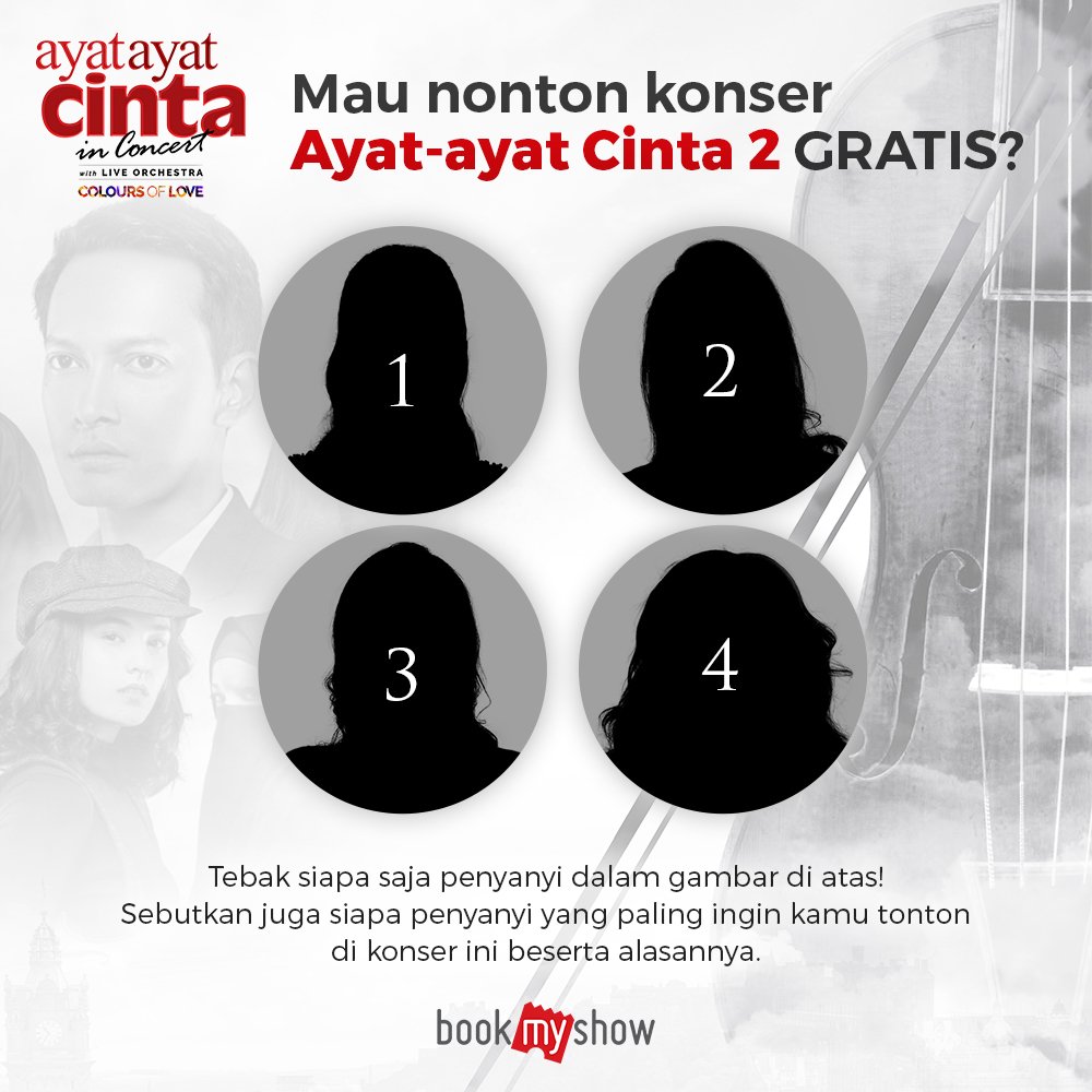 BookMyShow Indonesia : “Mau tiket nonton konser Ayat-Ayat Cinta 20 Desember 2017? Cek Instagram @BookmyshowID untuk ikutan kontes #BMSKonserAAC. https://t.co/Zq7DViETZQ… https://t.co/qBuYh48Be4”