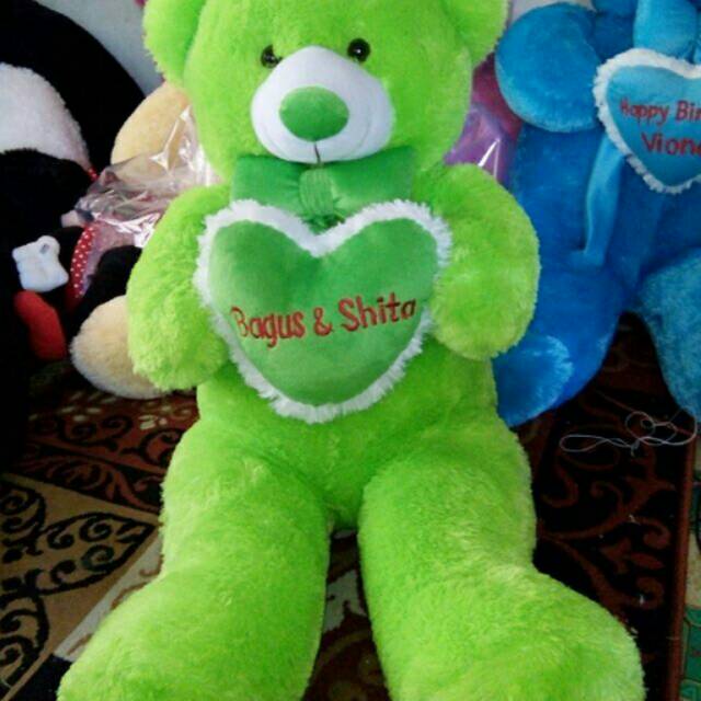 Boneka Beruang Duduk 1 meter warna hijau + Love nama Termurah | Shopee Indonesia