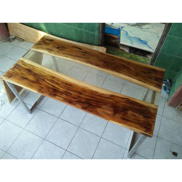 Promo meja bangku natural kayu resin motif sungai | Shopee Indonesia