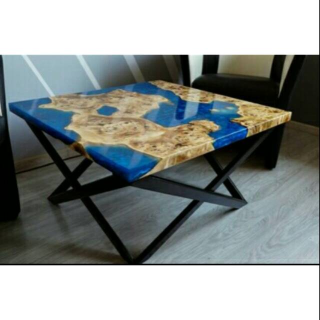 Jual Meja minimalis kayu natural resin motif batu biru - Kab. Jepara - mebel idaman | Tokopedia