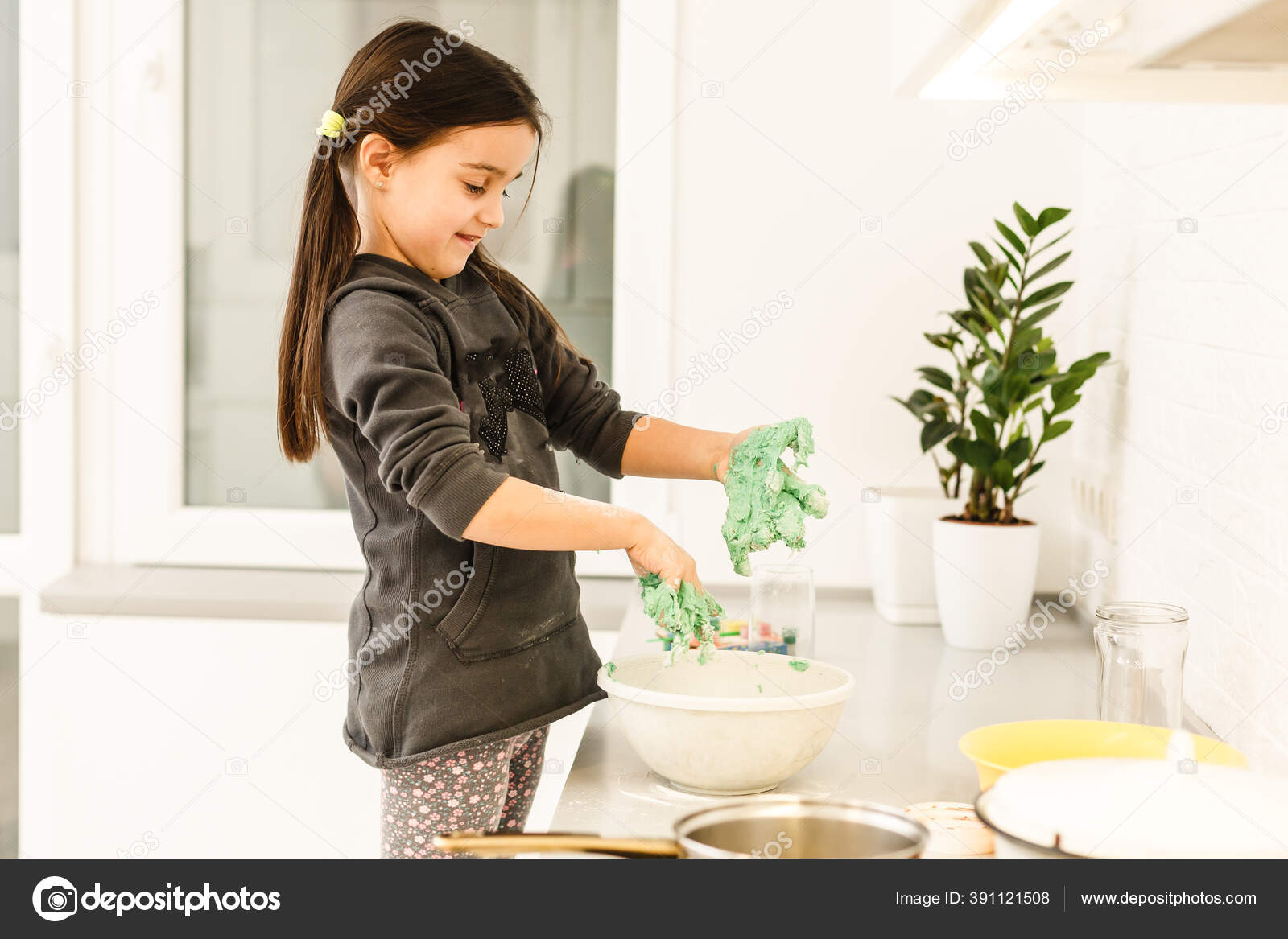 Gadis Kecil Yang Lucu Memasak Dapur Bersenang Senang Sambil Membuat Stok Foto © sinenkiy #391121508