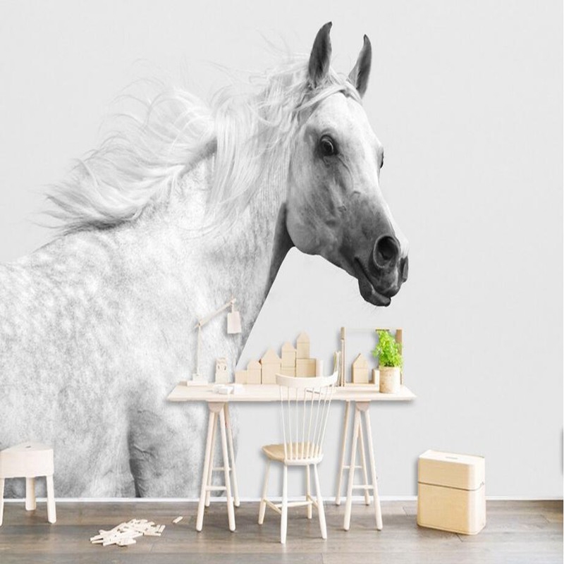 3D kustom minimalis mural wallpaper gulungan seni hewan kuda putih untuk ruang tamu kamar tidur | Shopee Indonesia