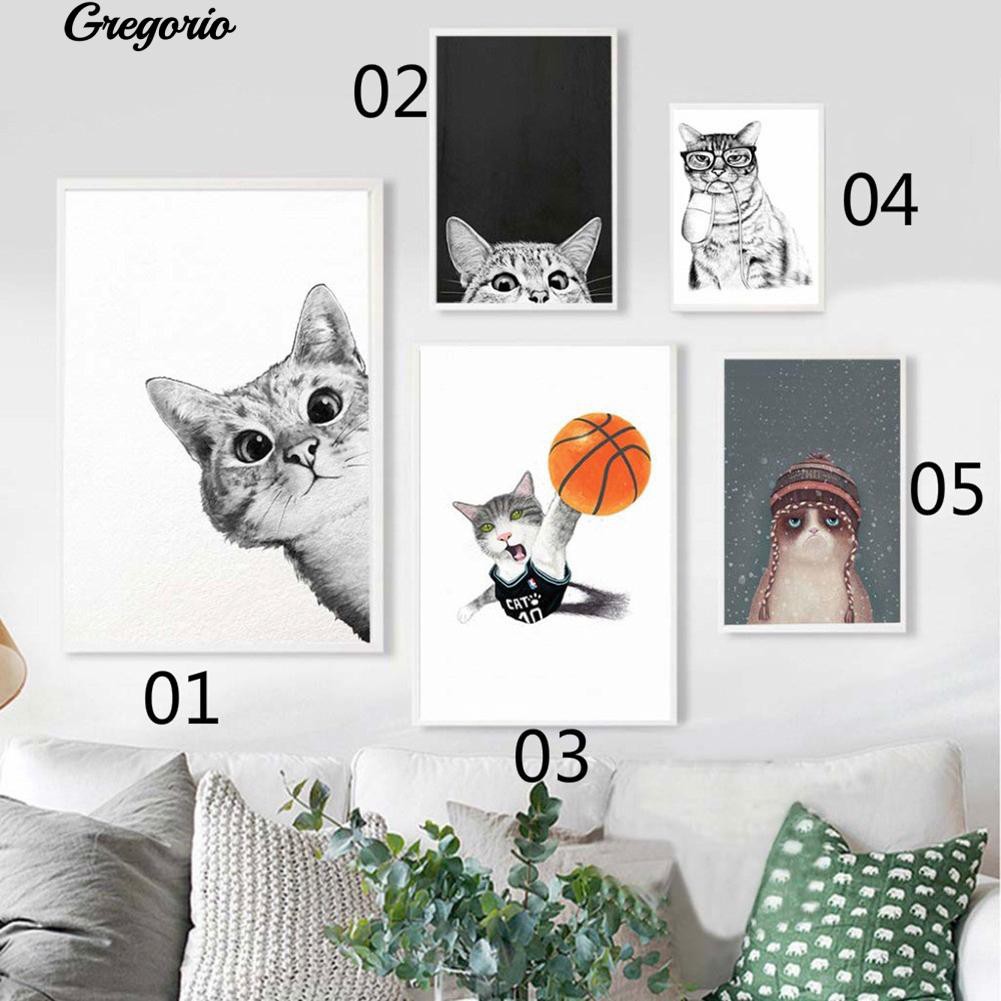Gregorio Kawaii Hewan Kucing Seni Kanvas Poster Lukisan Minimalis Dekorasi Kamar Anak-anak | Shopee Indonesia
