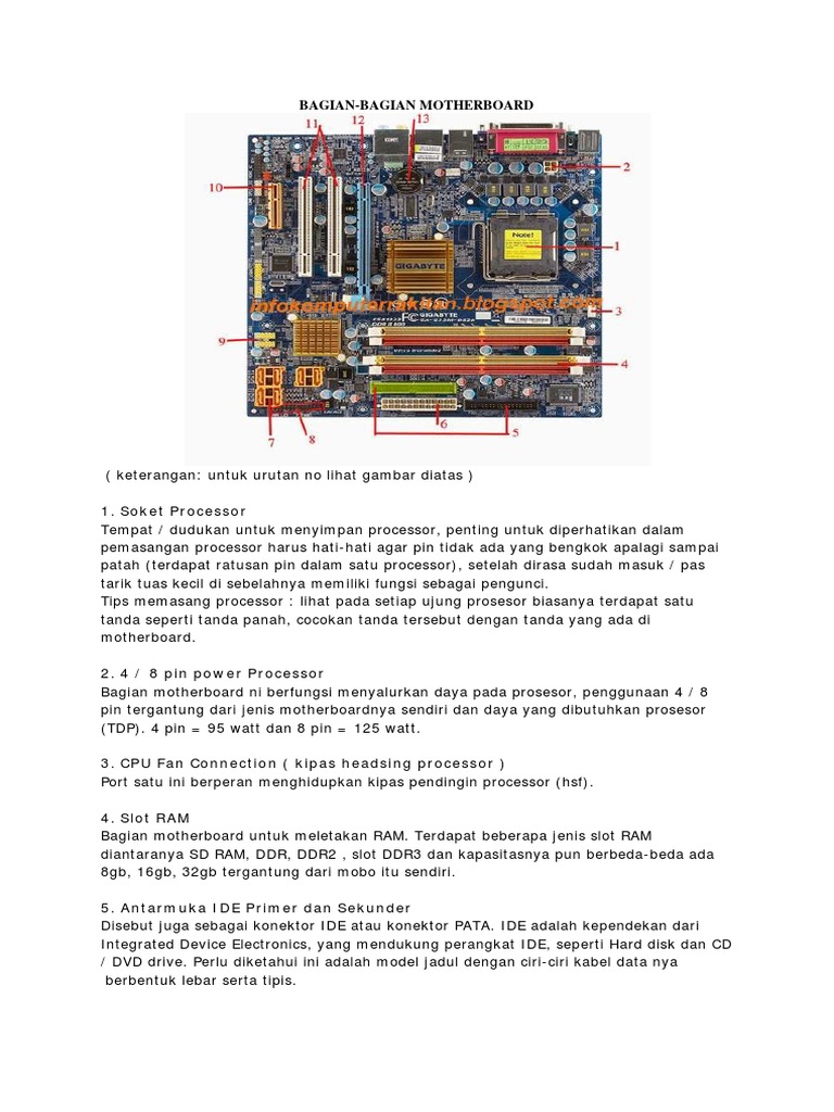 Bagian Bagian Motherboard Komputer Jelas Dengan Gambar