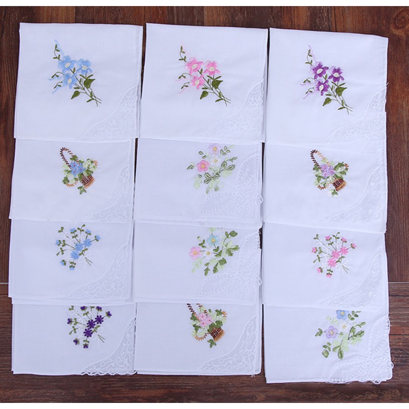 6Pcs Saputangan Vintage Bahan Katun Motif Bordir Bunga untuk Wanita | Shopee Indonesia