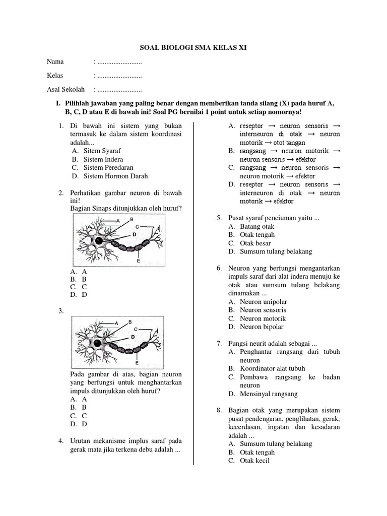 Sel Saraf Sensorik Motorik Multipolar Bipolar, Pengertian Jenis Struktur Fungsi Contoh Soal Ujian Materi pdf