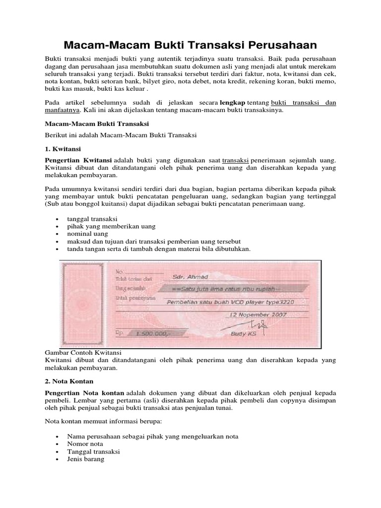 Contoh Bukti Transaksi Untuk Perusahaan | Paper.id Blog