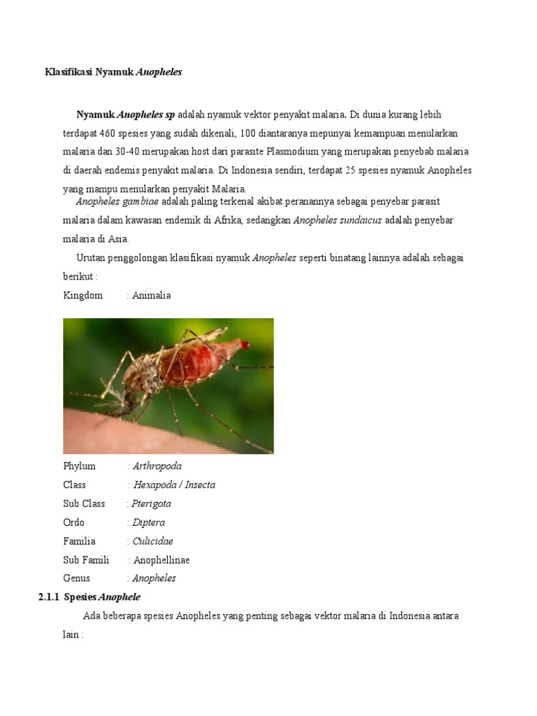 Klasifikasi Nyamuk Anopheles PSYCHOLOGYMANIA
