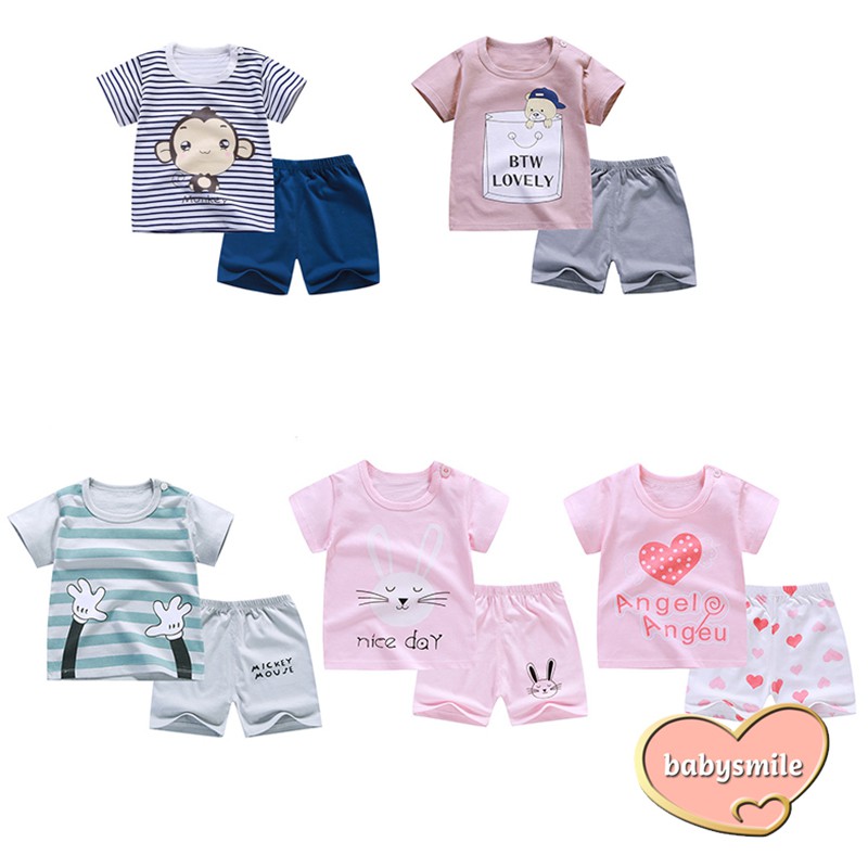 Set Baju Setelan T-Shirt Gambar Kartun + Celana Pendek untuk Bayi Laki-Laki dan Perempuan | Shopee Indonesia