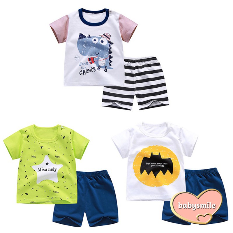 Set Baju Anak Laki-Laki Lengan Pendek Gambar Kartun + Celana untuk Musim Panas | Shopee Indonesia