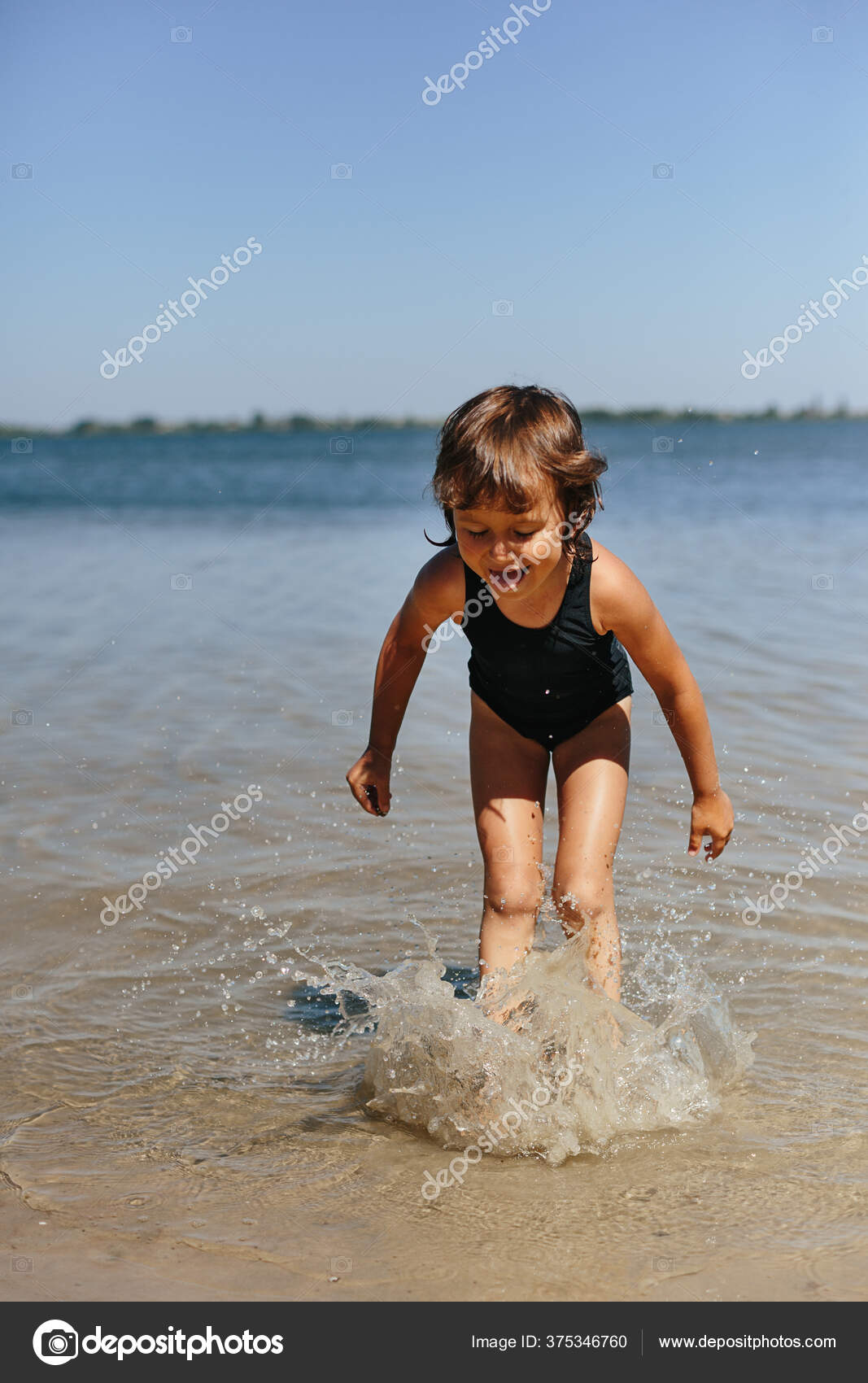 Gadis Kecil Yang Lucu Bermain Melompat Air Anak Yang Bahagia — Stok Foto © switlanasymonenko #375346760