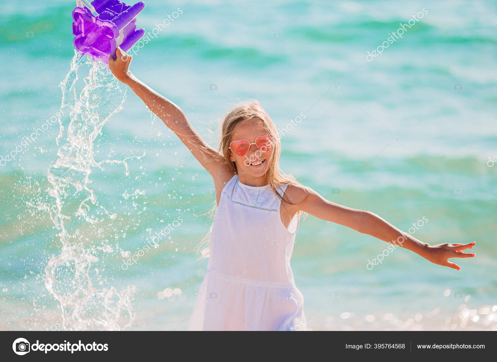 Gadis kecil yang lucu di pantai selama liburan musim panas — Stok Foto © d.travnikov #348354026