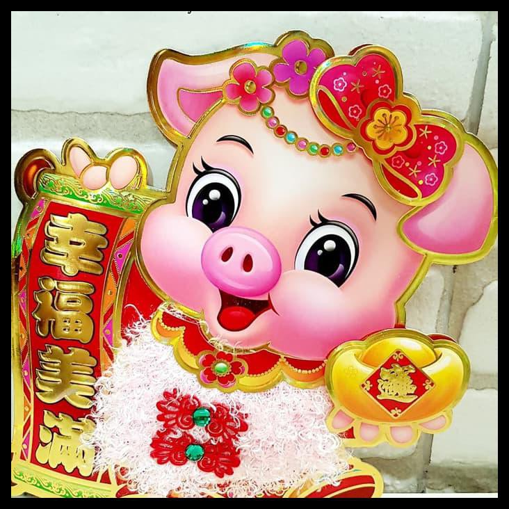 DISKON! Gambar Babi Keriting Besar Sepasang Parcel Imlek Murah Tempelan Fu Fuk | Shopee Indonesia
