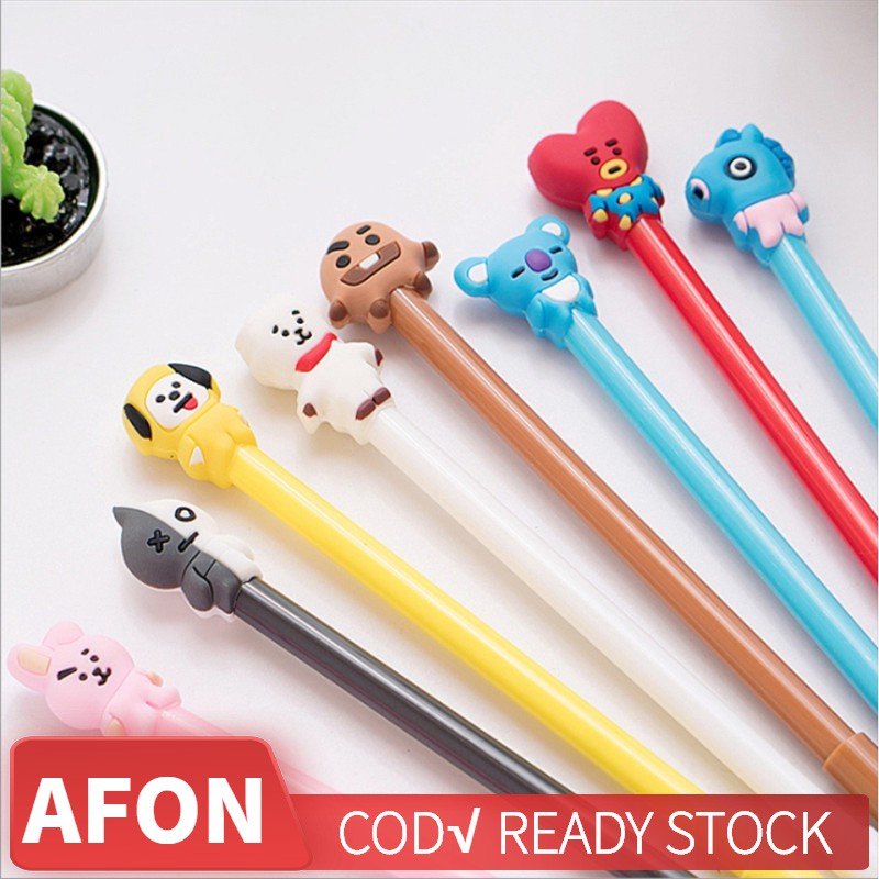 COD pena alat tulis BT21 KPOP Pen Warna Hitam Gambar Lucu Kartun Gel Pen | Shopee Indonesia