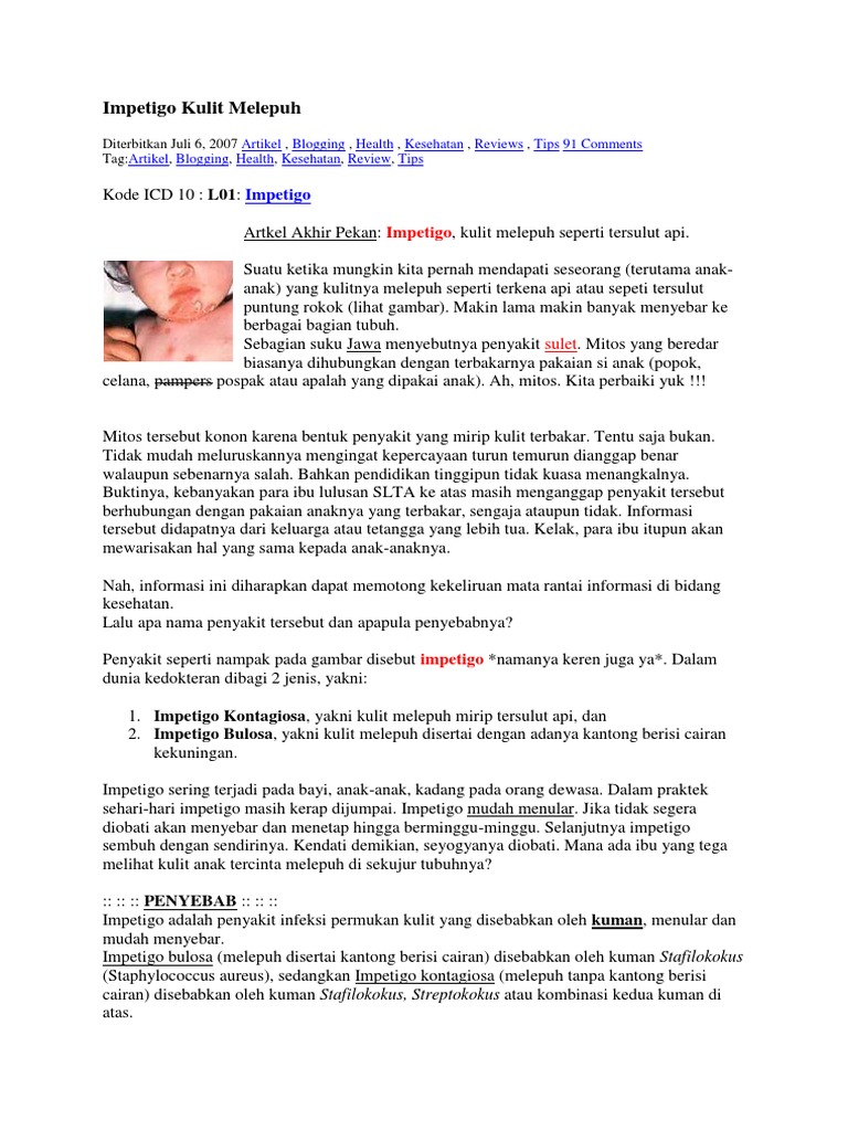 Cara Mengobati Impetigo Bulosa dan Impetigo Krutosa - UmarDanny.com