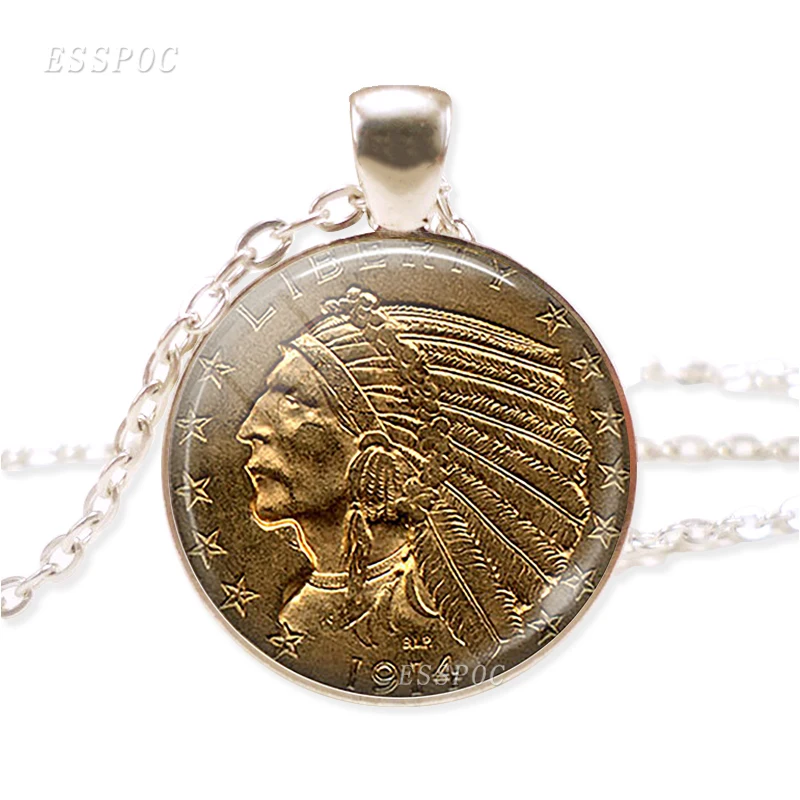 Kami 1914 Indian Head Koin Perhiasan India Head Dress Koin Gambar Vintage Kami Kalung Koin Amerika Kalung Koin|Liontin| - AliExpress