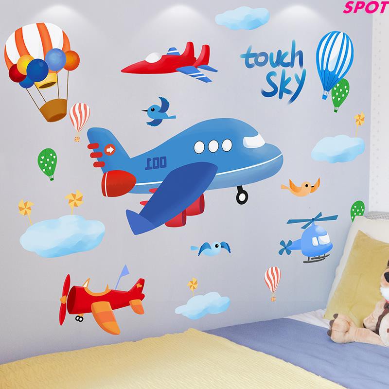 Kartun pesawat stiker, Kamar anak-anak, Bayi laki-laki kreatif stiker dinding, H | Shopee Indonesia
