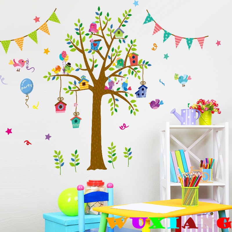 Adesivo De Parede Pelekat Dinding Rumah Burung Pihak Kartun Pokok Hiasan | Shopee Brasil